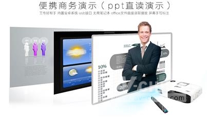 美高G10觸屏商務微型投影機不僅能投射高清大屏畫面,而且可以使用筆在投射畫面輕松標注、書寫、觸控。整個投影畫面就像一個大的平板電腦,商務交流更輕松。