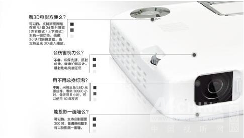 美高G10微型投影機(jī)關(guān)鍵部件優(yōu)中選優(yōu),DLP芯片采用美國德州儀器DLP芯片;光機(jī)采用臺(tái)灣陽明光電光機(jī)防潮防塵全封閉光機(jī);燈泡采用德國歐司朗30000小時(shí)長效LED光源;散熱器采用全銅不生銹散熱器;內(nèi)置過熱保護(hù)軟件,保證機(jī)器不會(huì)因長時(shí)間工作過熱導(dǎo)致?lián)p壞。