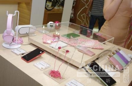 右方外側則是以主題的形式呈現(xiàn)不同色系的 Sony 產(chǎn)品,其中還有一個柜臺是以"粉紅"為主題,將 Sony 所有粉色系產(chǎn)品化為女孩兒的夢幻區(qū)域.