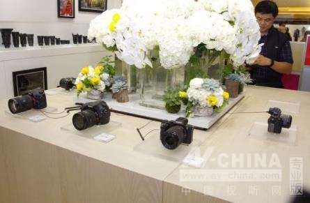 最右側則是以四方桌展示 Sony 的一系列相機,右邊的櫥窗內(nèi)陳列 Sony 的鏡頭與相機周邊,提供開放的相機試用空間.