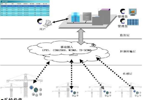 建設(shè)工程安全質(zhì)量物聯(lián)網(wǎng)管理系統(tǒng),主要由信息采集層、網(wǎng)絡(luò)接入層、網(wǎng)絡(luò)傳輸層、信息存儲與處理層組成。將移動執(zhí)法終端、施工升降機、塔式起重機作業(yè)產(chǎn)生的動態(tài)情況、工地周圍的視頻數(shù)據(jù)、混凝土攪拌車超載超速信息及時上傳給綜合管理平臺。