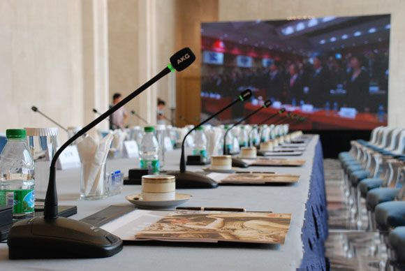 在擴(kuò)聲系統(tǒng)方面,VIP會(huì)議室則安裝了JBL Intellivox 數(shù)控指向性有源音柱DC115!坝捎跁(huì)議場(chǎng)地的空間較為狹窄,而且以大理石為主,導(dǎo)致很多回聲。JBL Intellivox系列音柱能提供一個(gè)非常狹窄的垂直覆蓋角度及寬廣的水平覆蓋角度,因此SPL均勻覆蓋,聲音數(shù)字化瞄準(zhǔn)聽眾并提供更少的聲音反射,配合AKG會(huì)議無線話筒,確保了語音清晰度高,聲音自然,有效地解決了場(chǎng)地因素的這一問題! 深圳鴻哲的技術(shù)工程師袁晨光如此說。