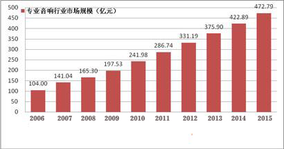 受益于國(guó)家宏觀經(jīng)濟(jì)的持續(xù)快速發(fā)展和人民生活水平的日益提高,以及體育賽事、文化娛樂等下游應(yīng)用領(lǐng)域的強(qiáng)有力推動(dòng),近年來(lái)我國(guó)專業(yè)音響行業(yè)發(fā)展快速,2006—2010年,我國(guó)專業(yè)音響市場(chǎng)規(guī)模由104億元增加至241.98億元,年復(fù)合增長(zhǎng)率達(dá)到了23.51%。