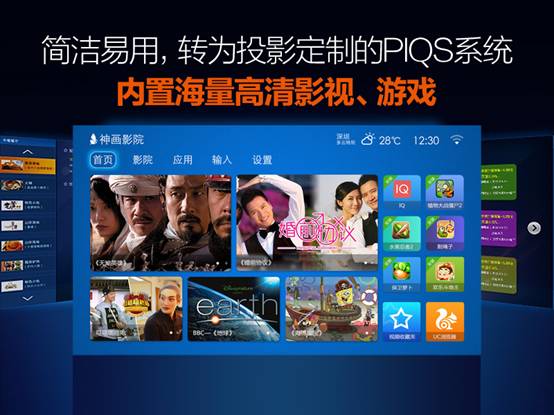 為了充分釋放神畫Y1的強勁硬件性能,神畫Y1還采用了基于Android4.4深度定制的PIQS UI,人性化的交互設計更適合大尺寸畫面的觸控操作,在美觀的基礎上提供了更便捷的應用管理和文件管理系統(tǒng)。
