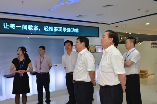 7月9日,洛陽市市長鮑常勇等一行領導蒞臨深圳銳取總部,在銳取公司董事長張秋的陪同下,對銳取公司智慧錄播系統(tǒng)進行深入了解。