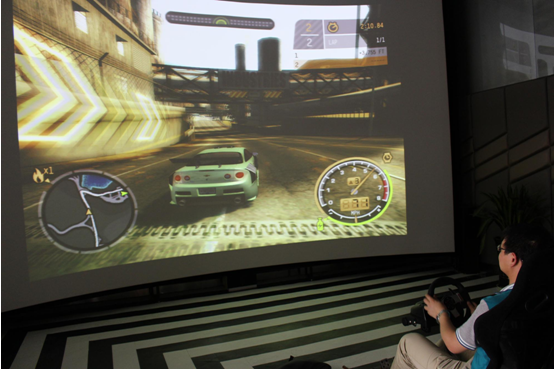 工程投影機(jī)與賽車游戲結(jié)合,打造出逼真震撼的賽車體驗(yàn)。此前在郴州世界有色金融