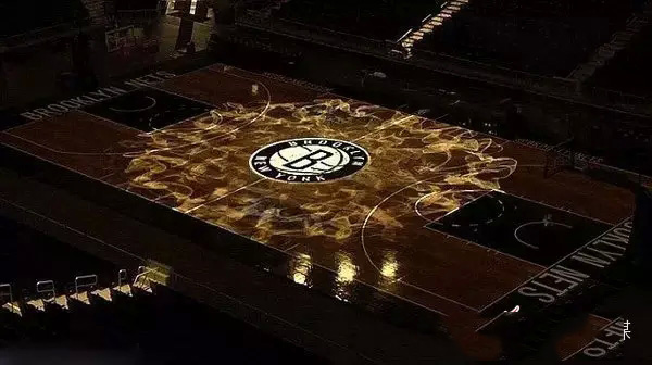 上圖為布魯克林籃網(wǎng)隊(duì)在紐約巴克萊體育場內(nèi)布置的賽場