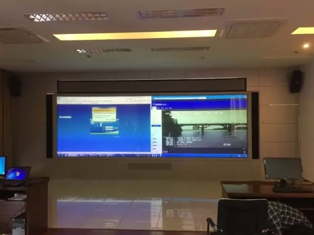 2014年1月,AVANZA激光投影機(jī)首次用于湖州海事局太湖水上救援指揮中心的大屏顯示,該項(xiàng)目到現(xiàn)在已穩(wěn)定的運(yùn)行了一年半的時(shí)間。對(duì)此項(xiàng)目做了詳細(xì)了解后,金華港航管理局采用了同樣的方案:3臺(tái)AVANZA激光工程投影機(jī)構(gòu)建了8m(寬)×1.8m(高)巨大顯示屏,用于實(shí)時(shí)監(jiān)控管理、保障航運(yùn)的安全暢通。