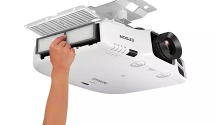 此外,因為學校的日常課程經常會使用黑板教學,導致教室內長時間存在大量灰塵。一般投影機如果長期使用,灰塵會進入其中,對投影機造成極大的損壞,需要頻繁的更換燈泡或者維修整機,無形中增加了使用成本。