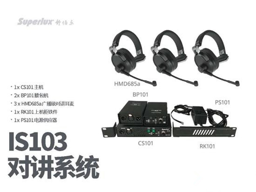 IS-103系統(tǒng)的標(biāo)準(zhǔn)配置包括,1個(gè)CS101小型主機(jī)(含喇叭)、1個(gè)PS101外接電源供應(yīng)器、2個(gè)BP101腰包機(jī)和3個(gè)HMD685a單耳對(duì)講耳機(jī),根據(jù)實(shí)際需要可以選購(gòu)多個(gè)配件以擴(kuò)展到多人同時(shí)使用。