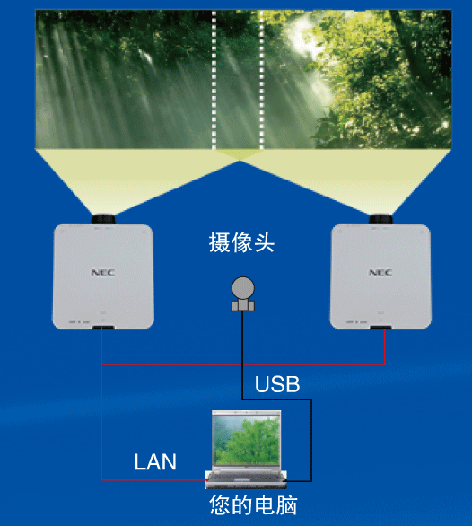 NEC在投影機(jī)中內(nèi)置自拼接功能,支持多屏幕自拼接,最大支持4臺(tái)2×2模式,實(shí)現(xiàn)4K超
