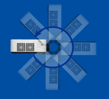 鏡頭中置,獨(dú)有的燈泡冷卻保證投影機(jī)360度投影,為多種安裝和解決