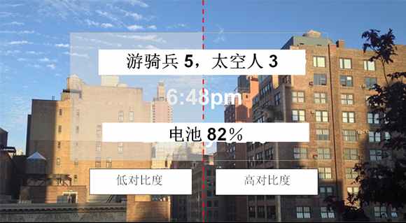 亮度:AR顯示器的亮度是用戶體驗的關(guān)鍵決定因素。如果亮度有限,則顯示器可能無法在顯示的內(nèi)容和背景環(huán)境之間產(chǎn)生足夠的差異(圖2)。另外,如果眼鏡是在戶外使用,則顯示器的輸出必須非常明亮,才能使內(nèi)容清晰可見。