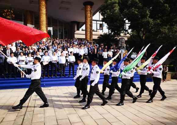 音王六面品牌旗在護(hù)旗手的護(hù)送下緩緩經(jīng)過(guò)主席臺(tái),它們鐫刻了音王30年艱苦創(chuàng)業(yè)的風(fēng)雨歷程,指引著音王人大步邁向成功。