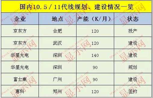 當(dāng)前,國內(nèi)擁有的10.5(11)代線明細(xì)如下:
