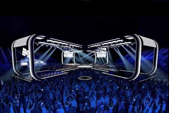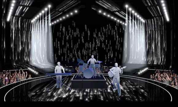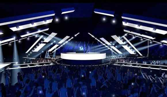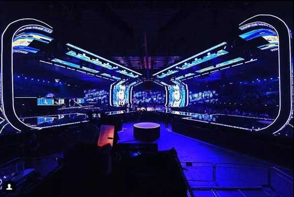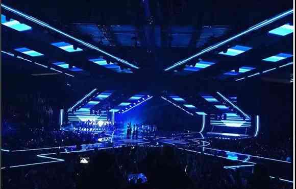 圓形舞臺(tái)頂部安裝了led屏幕與燈光裝置,與可升降全息幕布,以此來(lái)增強(qiáng)舞臺(tái)的空間感與科技感。
