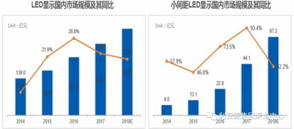 2018年LED整體市場(chǎng)預(yù)估325億,LED小間距整體市場(chǎng)預(yù)估67億,其中利亞德小間距在市場(chǎng)中的占有率為50%以上。