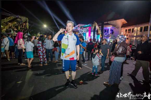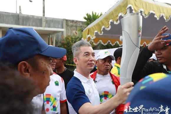 當日銳豐科技總經(jīng)理凌子斌在瑪瑯城內(nèi) IDJEN BOULEVARD大街上進行火炬的傳遞。印尼當?shù)貢r間7點左右,在喧鬧的呼聲中亞運會火炬終于來到了凌子斌總經(jīng)理的手中。