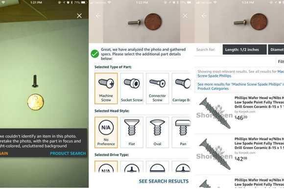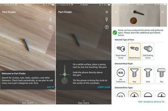 亞馬遜為其iOS應(yīng)用程序引入了一項新功能,稱為“Part Finder”。它使用相機讓用戶搜索您可能需要識別的特定小零件,如螺母和螺栓。