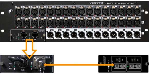 如果添加第二個(gè)MADI擴(kuò)展卡就能夠同時(shí)連接兩個(gè)Soundcraft迷你舞臺接口箱(32R、32i或16R、16i),最多可獲得96個(gè)話放。