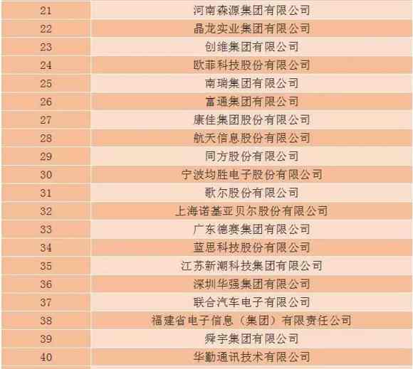 2018年第三十二屆中國電子信息百強(qiáng)企業(yè)名單