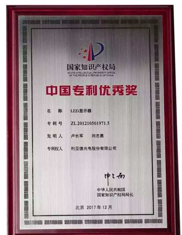 (利亞德榮獲2017年中國專利優(yōu)秀獎(jiǎng))
