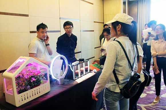 現(xiàn)場觀眾駐足圍觀展示樣品
