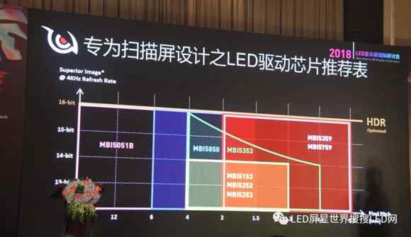 陳企凱先生表示,HDR在LCD或者OLED早已經(jīng)存在,但我們LED啟動(dòng)非?欤軌蚩焖偾袚Q,而且我們的頻率能夠比他們做得更好,市場(chǎng)上(HDR)更適合在LED上面發(fā)展。實(shí)現(xiàn)HDR的一個(gè)條件是要達(dá)到20000:1的高對(duì)度。HDR技術(shù)對(duì)我們驅(qū)動(dòng)IC的要求是高刷新、高比特?cái)?shù)、高灰階,聚積的MBI5359高集成,現(xiàn)在已經(jīng)可以做到25000:1,完全可以滿足要求。(注:目前市面一般顯示屏對(duì)比度為1:5000~6000。)