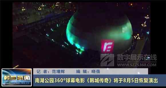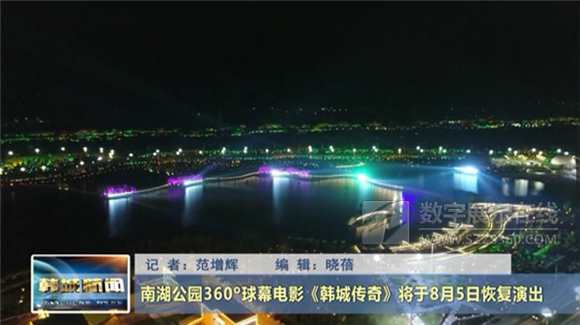 8月5日起,南湖公園360°球幕電影《韓城傳奇》將恢復演出。每晚演出兩場,時間分別為晚上8:00和9:00。