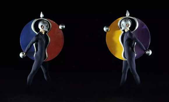 全劇以黃色、粉色和黑色構(gòu)成三個(gè)系列,兩男一女舞者更換18套服裝,完成12段舞蹈,短小精悍卻能宏大得像一部抽象的史詩(shī)!包S色”中有大圓裙子、潛水員、圓形手,“粉色”中包含了白色、藝術(shù)形象,“黑色”中有螺旋、圓碟人物、線狀服裝、金球。舞者化為抽象的時(shí)空符號(hào),科幻的、形而上的組成了機(jī)械洪荒中人性幻想與技術(shù)和諧的烏托邦。施萊默的舞蹈編排是一部眾生的符號(hào)典籍,從滑稽到神圣,從脆弱的情歌到恢弘的史詩(shī),從檸檬黃的喜劇氛圍、粉色的節(jié)日慶典到黑色的莊嚴(yán)儀式。舞者的身體看不到古典審美領(lǐng)域里的任何蹤跡,動(dòng)作因?yàn)闄C(jī)械感的服飾發(fā)生質(zhì)感和形態(tài)變化,而人性反倒在這種尷尬和笨拙中愈發(fā)顯得清晰。