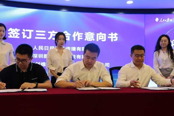發(fā)布會(huì)上,人民日?qǐng)?bào)數(shù)字傳播有限公司和創(chuàng)維集團(tuán)簽署合作備忘錄。人民日?qǐng)?bào)數(shù)字傳播有限公司、深圳酷開網(wǎng)絡(luò)科技有限公司、深圳市創(chuàng)維群欣安防科技股份有限公司簽訂三方合作意向書。