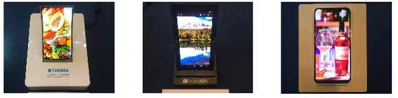 柔性產(chǎn)品一直是近年顯示領(lǐng)域的熱門話題,此次天馬展出多款柔性產(chǎn)品,其中這款5.99英寸18:9外彎折疊的全面屏,屏幕的上、左、右均為0.85mm的窄邊框,搭配雙排COF設(shè)計(jì),具有超高屏占比,分辨率為2880×1440,解析度達(dá)到真正的FHD 538 PPI。該屏可以大幅度減少智能終端設(shè)備的體積和重量,在屏幕顯示尺寸不變的情況下,彎折的形式更便于攜帶,擁有更多的使用場(chǎng)景,為智能手機(jī)等終端應(yīng)用提供了更多選擇。