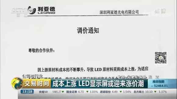 由于成本上漲,下游的LED顯示屏企業(yè)也紛紛發(fā)出漲價通知。