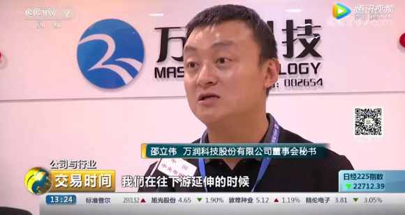萬潤科技股份有限公司董事會秘書邵立偉:我們在往下游延伸的時候,現在我們LED重點突破的領域叫景觀照明工程,這一塊我們去年上半年的時候整個收入還是一個千萬量級的,今年上半年已經有了一個非常大的進步。上半年從報表來看的話,景觀照明工程整個收入已突破兩個億了。