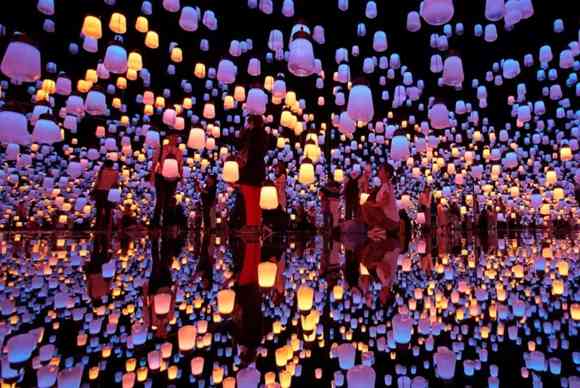 這個(gè)來(lái)自日本的“終極技術(shù)專家(ultra-technologists)”團(tuán)隊(duì)使用“teamlab borderless”這個(gè)詞匯來(lái)形容那些無(wú)邊界的裝置作品,它們穿越了不同的房間、散布在大廳里、和其他的作品相互映襯,有時(shí)還相互融合在一起。