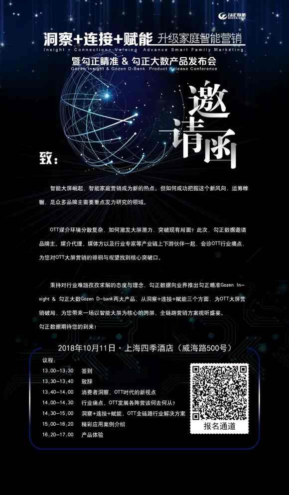 其中,勾正睛準(zhǔn)&勾正大數(shù)將于10月11日上海四季酒店正式發(fā)布,CSM、尼爾森、陽獅、群邑、京東黑瓏、老板電器等眾多知名企業(yè)將蒞臨本次會(huì)議,歡迎行業(yè)伙伴報(bào)名參加。