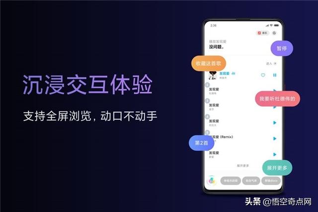 支持全屏瀏覽,無(wú)論內(nèi)容多長(zhǎng),都可以輕松閱讀。當(dāng)你使用小愛(ài)3.0時(shí),頁(yè)面上你能看到的可以點(diǎn)擊的地方,都可以用語(yǔ)音指令來(lái)操作。例如,聽(tīng)音樂(lè),您可以輕松地選擇歌曲、裁剪歌曲、收集、播放和直接切換版本,例如“我想聽(tīng)實(shí)時(shí)版本”,而不必單擊移動(dòng)屏幕、移動(dòng)嘴、使用語(yǔ)音指令輕松選擇歌曲、剪切歌曲、收集、播放和直接切換版本。比如說(shuō)“我要聽(tīng)live版”。(目前支持聽(tīng)音樂(lè)、找視頻、查菜譜、聽(tīng)有聲節(jié)目等場(chǎng)景,未來(lái)將拓展到更多場(chǎng)景中)