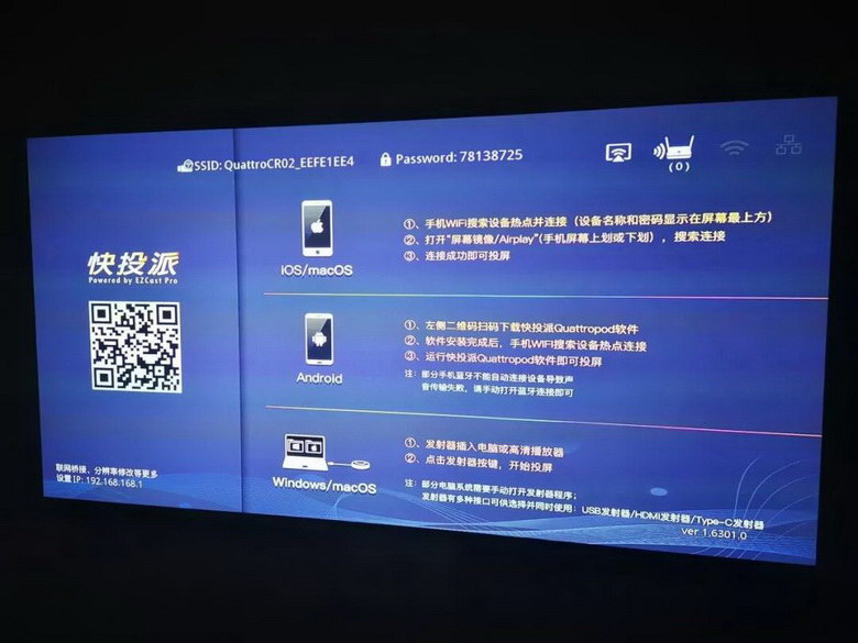開機畫面羅列了各種設(shè)備的投屏使用方法,安卓蘋果手機的方法好像差不多,但安卓可以傳輸聲音了,這個非常不錯。