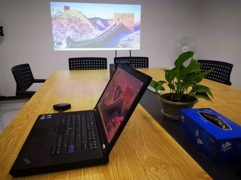 但同事們或者客人用的筆記本接口也不統(tǒng)一,我還得給他們準備各種接口的轉(zhuǎn)接器,那么多線材擺在會議桌上實在難看,而且手機投影還是解決不了。