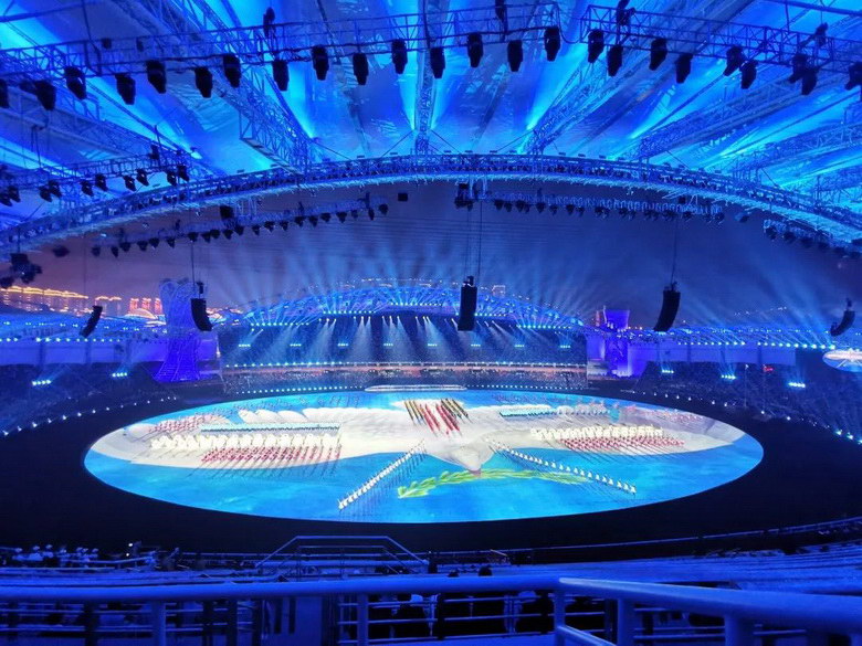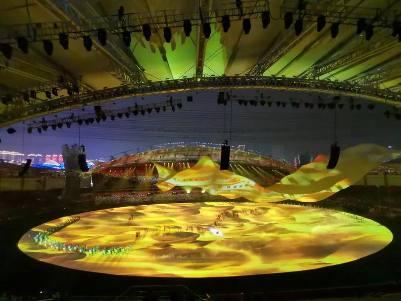 這是一次和平的慶典,更是所有軍人的榮耀。軍運會組委會用了最高標(biāo)準(zhǔn)籌備本場盛會。開幕式采用了國內(nèi)首創(chuàng),也是世界上最大的全三維立體式舞臺。充分利用有限空間,通過高新技術(shù)實現(xiàn)舞臺的多維擴展,F(xiàn)場大面積使用了投影技術(shù),通過多媒體影像互動,完成了360度全景式、立體式空間表演。