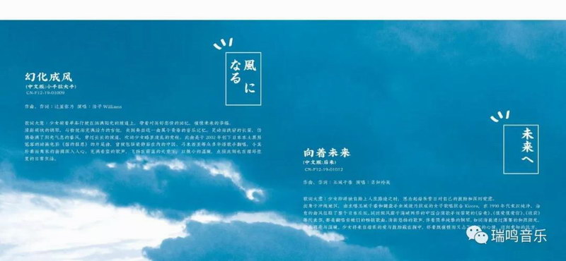 關(guān)注【瑞鳴音樂】+轉(zhuǎn)發(fā)本篇文章至朋友圈并附文字“瑞鳴出新專輯啦!轉(zhuǎn)發(fā)文章就有機(jī)會免費(fèi)得最新專輯《那些年我們唱過的日本歌》~”將截圖發(fā)送至后臺抽取一名送出《那些年我們唱過的日本歌》CD一張!于11月6日專輯正式上市開獎~