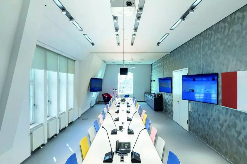 呈矩圓形的會(huì)議室,之前的會(huì)議系統(tǒng)無(wú)法保證語(yǔ)音的清晰度,影響會(huì)議室內(nèi)部和遠(yuǎn)程地點(diǎn)的參與者,妨礙到了內(nèi)部、外部的團(tuán)隊(duì)合作。