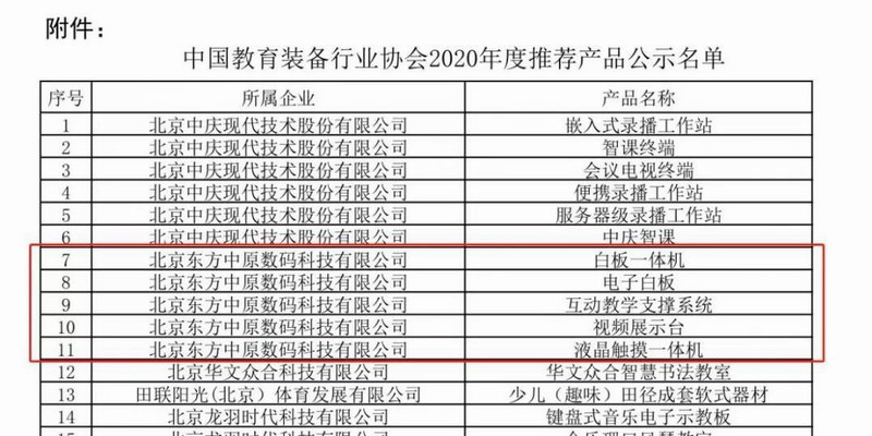 在2020年度推薦產(chǎn)品中,全國共有1060個(gè)產(chǎn)品申報(bào)評(píng)選,層層篩選后最終只有247家企業(yè)獲得推薦,東方中原憑借其優(yōu)秀品質(zhì),從一千多個(gè)產(chǎn)品中突圍,光榮入選中國教育裝備行業(yè)協(xié)會(huì)2020年度推薦產(chǎn)品。