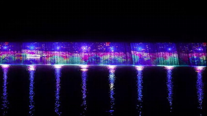 伴隨著場景變化,在水幕上呈現(xiàn)出五彩繽紛的影像