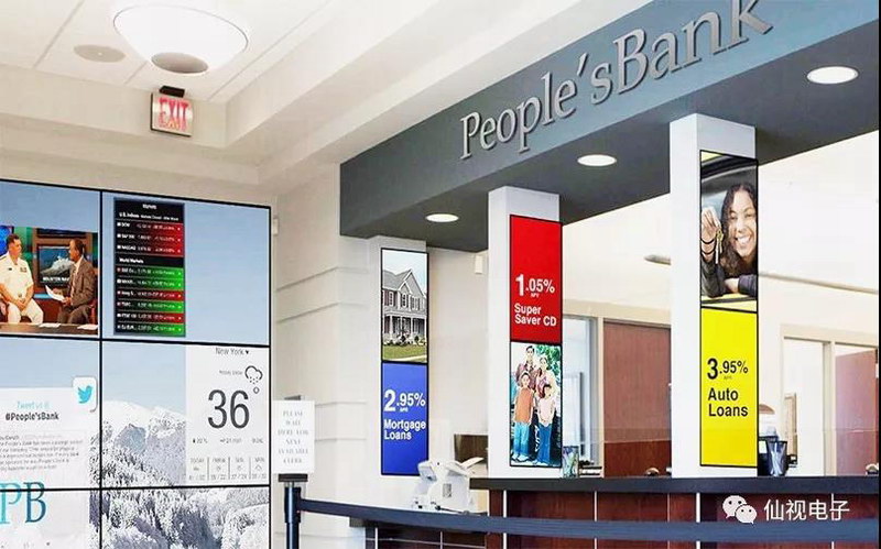 銀行:工作人員狀態(tài)圖、銀行業(yè)務(wù)流程提示、理財小貼士的全面展示,讓銀行更加便民,服務(wù)更加周到;定時開關(guān)機及定時切換播放內(nèi)容,節(jié)省了頻繁更換易拉寶等紙質(zhì)廣告的成本、人力成本,大大提升銀行廳堂的運維效率,解放人力;內(nèi)置GTV智能管理系統(tǒng)方便統(tǒng)一集中管理各銀行網(wǎng)點。