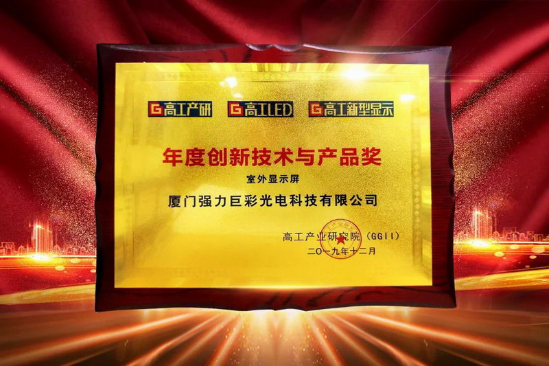 不止如此,強力巨彩還獲得兩大行業(yè)媒體所頒發(fā)的榮譽獎項。在2019高工LED金球獎頒獎典禮上,強力巨彩榮獲2019高工金球獎“年度創(chuàng)新技術(shù)與產(chǎn)品獎—室外顯示屏”、“2019年度品牌—顯示屏”、“年度創(chuàng)新技術(shù)與產(chǎn)品獎—室內(nèi)顯示屏”三個獎項。