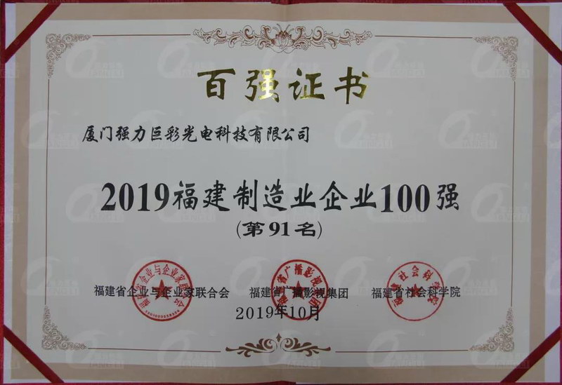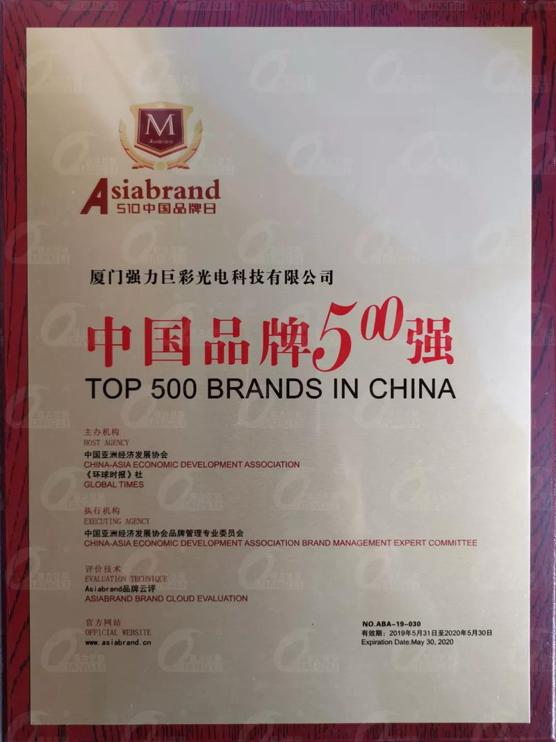回首這一年,強力巨彩碩果累累,發(fā)展迅猛,憑實力頻頻上榜“2019中國品牌價值榜”(創(chuàng)新類)、“2019中國品牌500強”、“中國(行業(yè))十大領(lǐng)軍品牌”、“福建省制造業(yè)單項冠軍企業(yè)”、2019“福建省制造業(yè)100強”、“2019福建民企業(yè)100強、民企制造業(yè)50強”、“2019廈門企業(yè)100強”、“2019廈門新興產(chǎn)業(yè)專精特新企業(yè)十強”等。