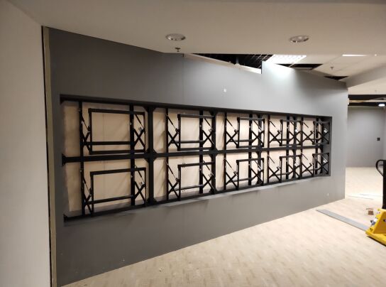 4套液晶拼接大屏幕顯示系統(tǒng)均采用了壁掛式平推液壓前維護(hù)支架