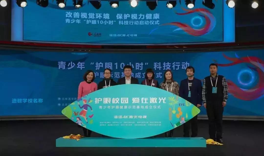 1月9日下午,海信和人民網(wǎng)在北京共同發(fā)起「青少年護眼10小時」科技行動,呼吁全社會關注青少年視力健康,倡導采取科技先行、科學護眼的有效舉措改善青少年視力健康。作為落實此次行動的第一步,海信4K激光電視進駐北京廣渠門中學、清華附小、大地幼兒園等十所校園,建立「青少年護眼示范基地」。