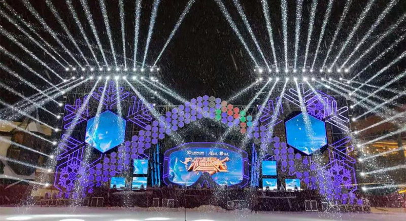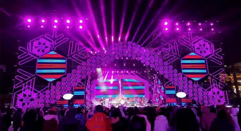 為更好的渲染現(xiàn)場氣氛,擴聲系統(tǒng)特別使用由北京世紀德天文化傳媒有限公司提供的JBL VTX 系列揚聲器。采用24只JBL VT4888全頻揚聲器分為左右兩組吊掛在舞臺兩側(cè);24只JBL VTX S28和VT4880超低音揚聲器分三組擺放在舞臺下方; 12只JBL VTX A12分為四組作為中置揚聲器,整套擴聲系統(tǒng)充分展現(xiàn)冰雪與搖滾激情碰撞。